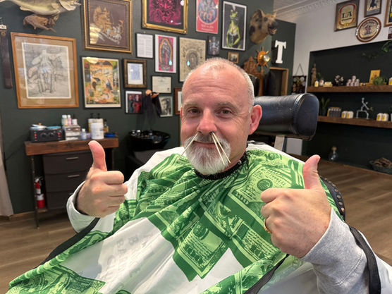 Clean up mustache and face with trimmer.